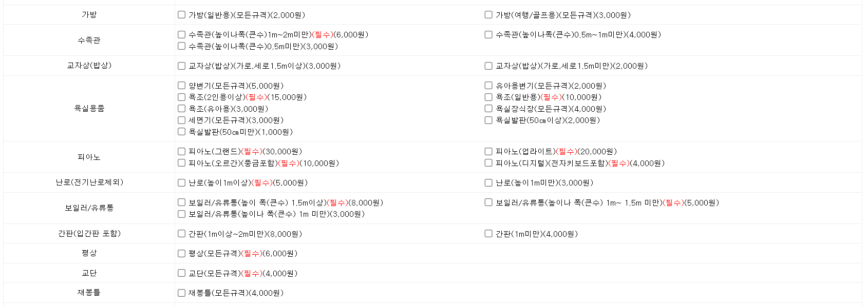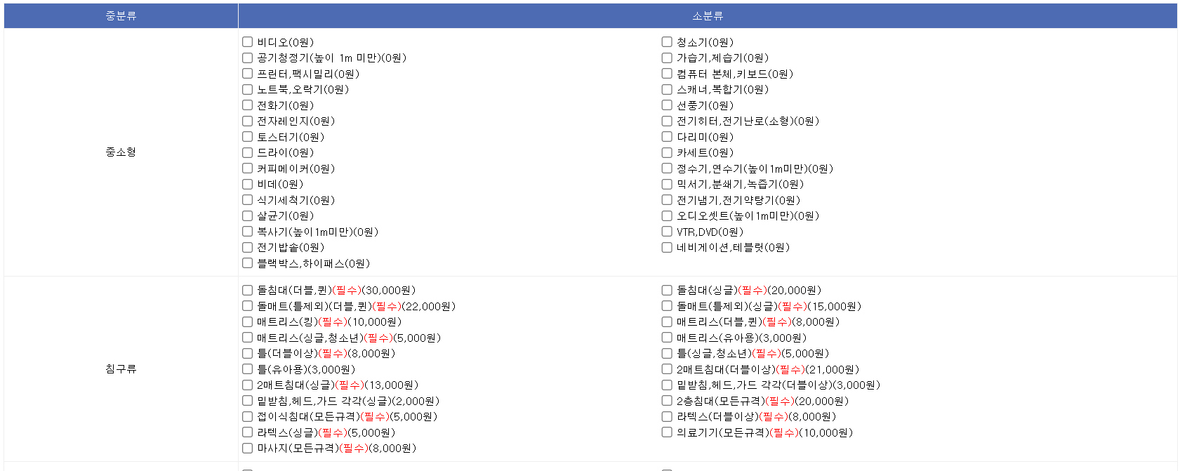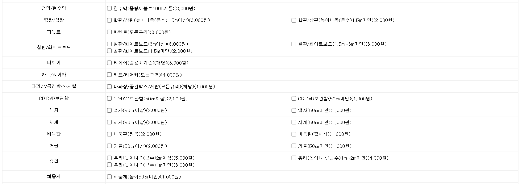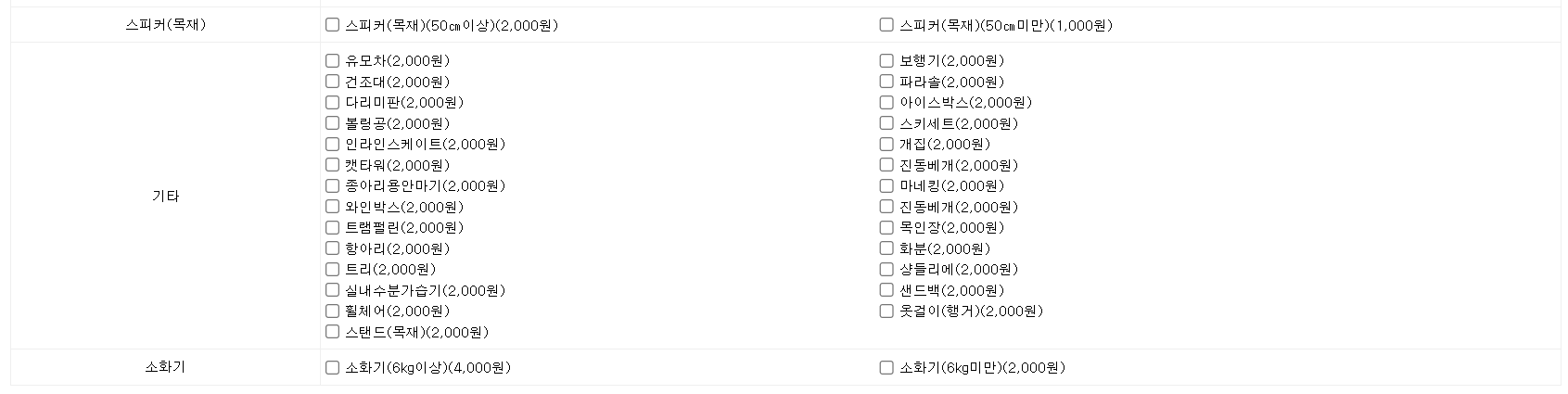 대형폐기물 품목별 스티커 가격