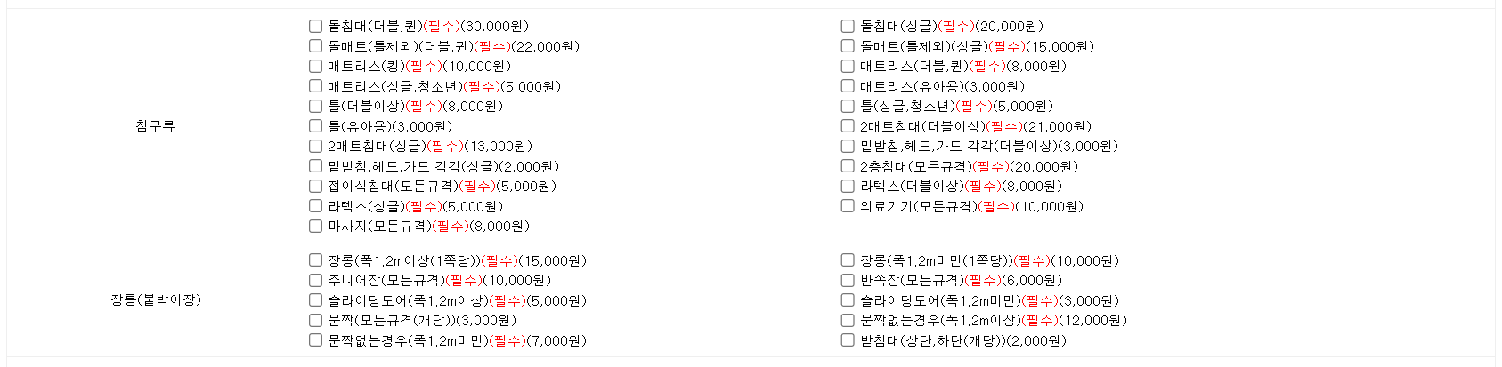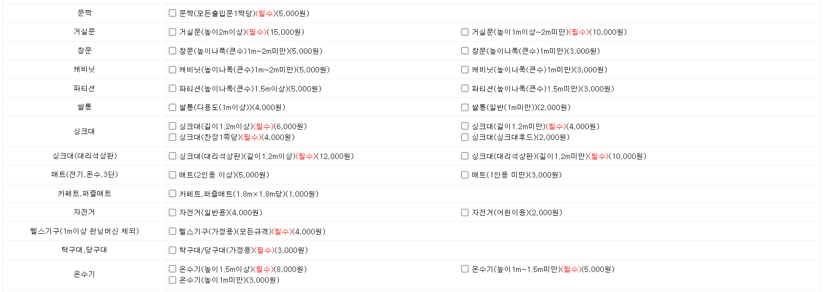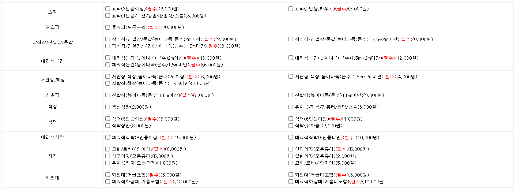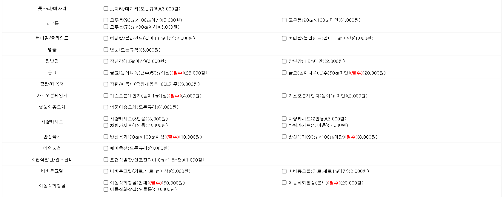 대형폐기물 품목별 스티커 가격