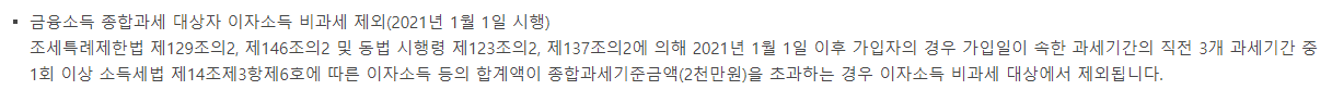 (이자 소득 비과세 대상 소득의 기준은 일부가 상이합니다)